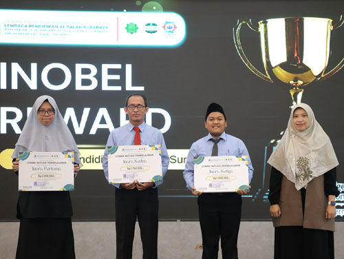 Di tengah tuntutan perubahan dunia pendidikan yang kian dinamis. Lembaga Pendidikan Al Falah Surabaya menegaskan perannya sebagai penggerak inovasi pembelajaran melalui Inobel Awards (Innovation in Education Award) . Ajang ini menjadi bentuk apresiasi nyata. Bagi para guru yang tidak hanya mengajar di ruang kelas. Tetapi juga menghadirkan gagasan dan praktik pembelajaran inovatif melalui karya ilmiah. Dari ratusan karya yang diseleksi secara ketat. Terpilih empat guru terbaik yang dinilai mampu menjawab tantangan pendidikan modern dengan pendekatan kreatif, reflektif, dan bernilai keislaman..jpg)